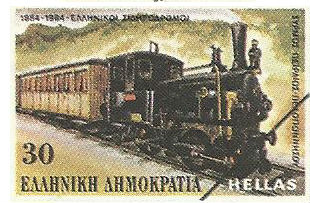 Έκδοση για την εκατονταετηρίδα των Ελληνικών Σιδηροδρόμων. Σχεδίαση Π. Γράββαλος. Εκτύπωση: Αλέξανδρος Ματσούκης. Συρμός Πειραιώς – Πελοποννήσου.