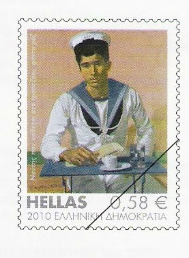Ελληνική Τέχνη. Δείχνει ένα από τα έργα του Τσαρούχη με θέμα «Ναύτης που κάθεται στο τραπεζάκι» (1980).