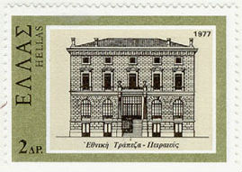 Κοινή έκδοση για τη νεοελληνική αρχιτεκτονική του 19ου αιώνα. Σχεδίαση, καλλιτεχνικό γραφείο ΕΛ.ΤΑ. Εθνική Τράπεζα Πειραιά (Σχέδιο πρόσοψης, αμφισβητείται αν εφαρμόστηκε).