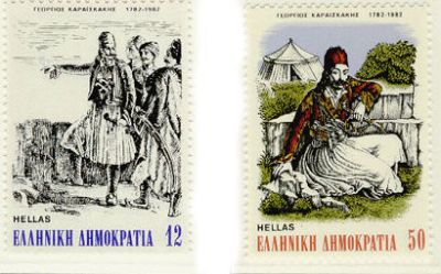 Αναμνηστική έκδοση για τα 200 χρόνια από τη γέννηση του Γεωργίου Καραϊσκάκη. Σε δύο αξίες των 12 και των 50 δραχμών. Η πρώτη έχει τμήμα σχεδίου από τον πίνακα του Θεόδωρου Βρυζάκη με τοστρατόπεδο της Καστέλλας. Η προσαρμογή έγινε από τη Β. Κωνσταντινέα.