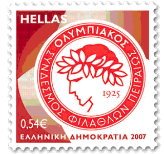 Ιστορικά αθλητικά σωματεία. Το λογότυπο του Ολυμπιακού Συνδέσμου Φιλάθλων Πειραιώς. Φυσικά σε χρώμα κόκκινο.