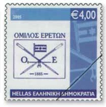 Ιστορικά ποδοσφαιρικά και αθλητικά σωματεία. Όμιλος Ερετών. Έτος ιδρύσεως 1885. Απεικονίζεται το σήμα του.