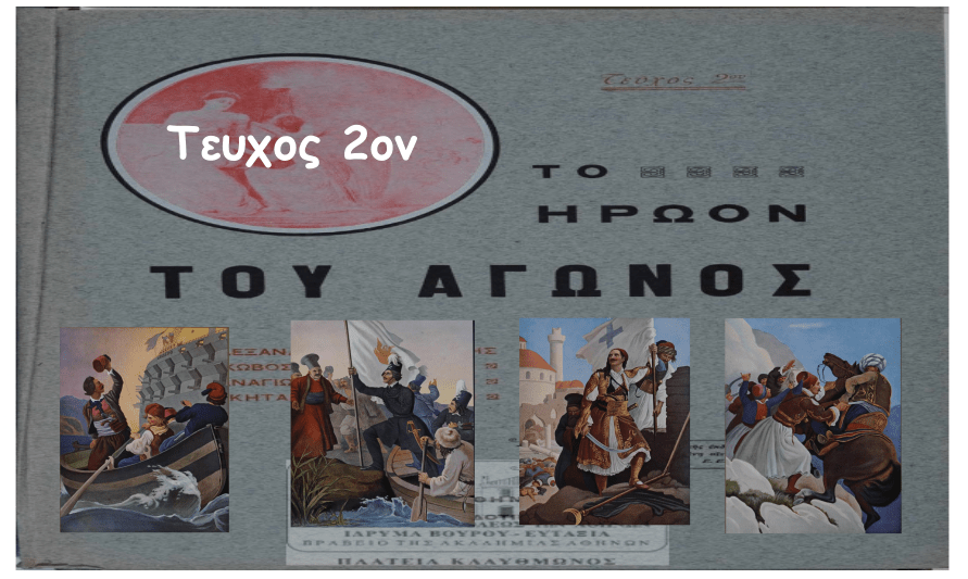 Το δεύτερο τεύχος, περιλαμβάνει τους ακόλουθους εθνικούς ήρωες: 1) Ιάκωβος Τομπάζης 2) Αλέξανδρος Υψηλάντης 3) Παναγιώτης Κεφαλάς 4) Νικηταράς Το ΗΡΩΟΝ ΤΟΥ ΑΓΩΝΟΣ εκδόθηκε σε 10 μηνιαία τείχη, από 24η Μαρτίου 1909. Στα δέκα τείχη περιλαμβάνονται 40 τετραχρωμίες - καλλιτεχνικές λιθογραφίες -, με επεξηγηματικά κείμενα, που αναφέρονται στην Επανάσταση. Είναι έργα του Γερμανού Ζωγράφου ΦΟΝ …