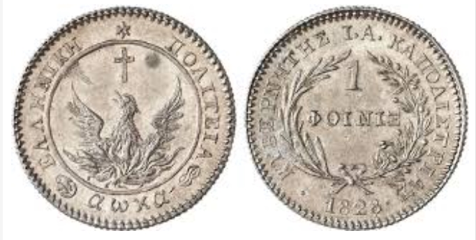 Τα πρώτα νομίσματα της ελεύθερης Ελλάδας εκόπησαν στις 27/06/1829. Και είναι αξιοσημείωτο το γεγονός ότι και το πρώτο αρχαίο ελληνικό νόμισμα οι «χελώνες», είχαν κοπεί τον 7ον αιώνα π.Χ. πάλι στην Αίγινα, που τότε ήταν αποικία των Αργείων από τον βασιλιά του Άργους τον Φείδωνα. Τελικά τέθηκαν σε κυκλοφορία μόνο 4 εκδόσεις. Ο αργυρός «Φοίνικας» τα χάλκινα «λεπτόν», «πεντάλεπτον» και «δεκάλεπτον» και το 1830 το χάλκινον «εικοσάλεπτον».