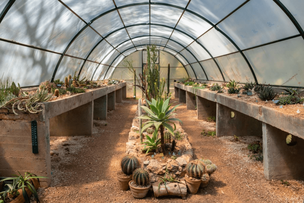 Ο Διομήδειος Κήπος έχει και θερμοκήπειο στο οποίο αναπτύσσει και διατηρεί φυτά που έχουν ανάγκη υψηλότερων θερμοκρασιών και υγρασίας, όπως τα φυτά των τροπικών δασών, κάκτους και παχύφυτα. Μεταξύ άλλων, ο επισκέπτης έχει τη δυνατότητα να παρατηρήσει το ζαχαροκάλαμο, το φυτό του πιπεριού, τη Μimosa, το φυτό με τα ευαίσθητα στο άγγιγμα φύλλα, την εντομοφάγο Δροσερά. Παράλληλα εκατοντάδες είδη ζώων ζουν στο προστατευόμενο κομμάτι της έκτασής του. Σπάνια ψάρια στις λίμνες και αμέτρητες νεροχελώνες, κουκουβάγιες, ελεύθερα πτηνά ή σε καταφύγια, αλεπούδες και λαγοί είναι κάποια από αυτά που ο επισκέπτης μπορεί να παρατηρήσει.