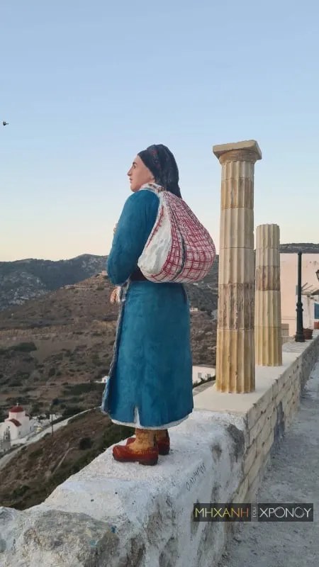 Η μάνα της Ολύμπου, ντυμένη στο καβάι, την παραδοσιακή φορεσιά, και με στιβάνια, έχει το βρέφος με το σεντόνι στην πλάτη και κοιτάζει προς το χωριό της. Κολώνα στάθηκε η ίδια στην Ιστορία, τώρα όμως σιωπηλά διαμαρτύρεται για την αδιαφορία όσων θα μπορούσαν να βοηθήσουν, του κράτους π.χ. που αφήνει έναν τόπο με τέτοια παράδοση να μαραζώνει, μου είπε ο Γιάννης Χατζηβασίλης ετοιμάζοντας το άγαλμα στο εργαστήριο.