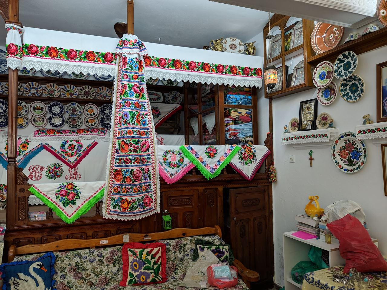 Οι παλιές γυναίκες, αυτές που πράγματι κρατούσαν στο χέρι τους με πόνο αλλά και σθένος την επιβίωσή του φεύγουν σιγά σιγά και όσες μένουν δεν μπορούν πια να φέρνουν βόλτα πάνω κάτω τον δύσβατο οικισμό που απαιτεί ασκημένα πόδια για να τον διαβείς. Όταν άρχισα να γνωρίζω τους ανθρώπους κατάλαβα ότι θρήνησαν πολλές απώλειες γηραιότερων το τελευταίο διάστημα. Τα μαύρα του πένθους έρχονταν σε μεγάλη αντίθεση με το χρώμα που έχουν τα κεφαλομάντηλα, όπως τα βλέπεις στα μαγαζάκια ή στολισμένα στα σπιτικά. Προσωπικά, τα κουβαλούσα μέσα μου από παιδί και έτσι αποφάσισα να πάω στην Όλυμπο.