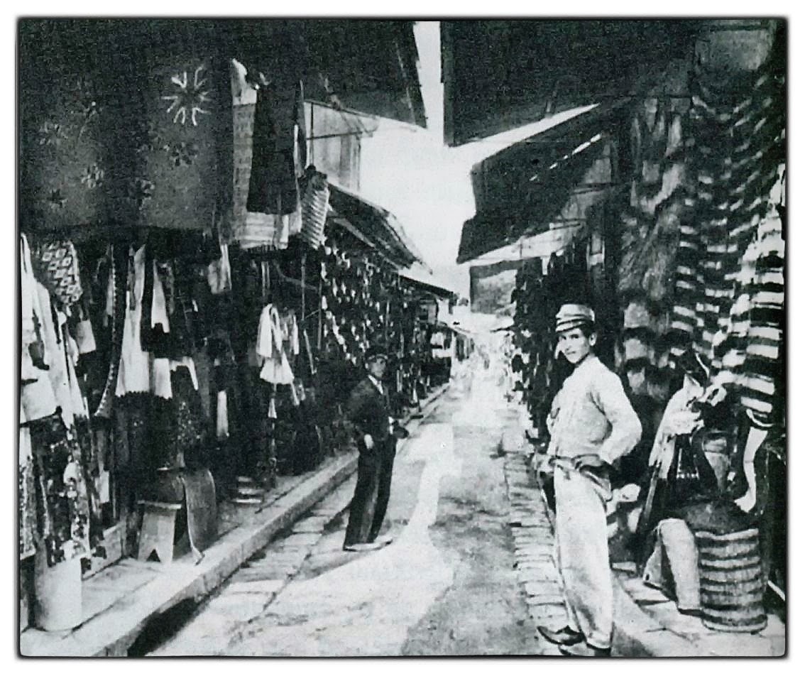 «…Έχουν μείνει τίμιοι καταστηματάρχες, φορούν το ίδιο απαράλλαχτο κοστούμι, διατηρούν τα ίδια έθιμα. …Τους βρίσκει στα παλιά στενά μαγαζάκια τους, στο παλιό παζάρι και έχουν, όπως τότε, καφενεία, καπνοπωλεία κι άλλα καταστήματα.