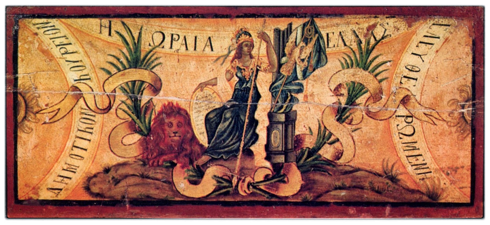 «Είδοποίησις / Ξένος τις διδάσκαλος της Γαλλικής γλώσσης (καί των επιστημών) προσκαλεί τους όσοι επιθυμούν να σπουδάσουν την ρηθείσανγ λώσσαν να τον ανταμώσωσιν εις το Φαρμακοπωλείον του Κ. Ορλάνδου».