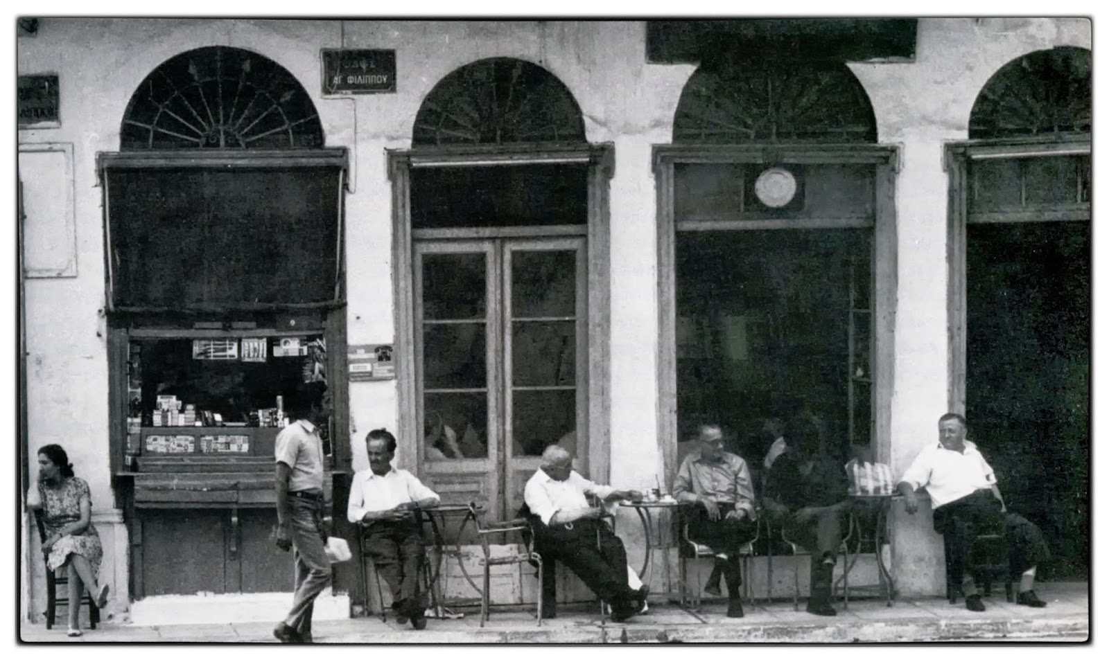 Όπως σ’ όλες τις μικρές πόλεις, χώροι συναντήσεων και συζητήσεων για τους Αθηναίους ήταν τότε τα μπακάλικα, τα κουρεία, τα φαρμακεία. Με σαφή διαχωρισμό των κοινωνικών τάξεων: