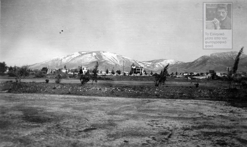 Άποψη του Ελληνικού και ο χιονισμένος Υμηττός, τον Φεβρουάριο του 1940