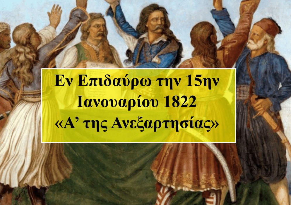 Eν Eπιδαύρω την 15ην Iανουαρίου. A της Ανεξαρτησίας. 1822.»