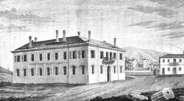 Andreas Forster (;), Το Βασιλικό Νομισματοκοπείο και Σφραγιστήριο, 1837, λιθογραφία. Δεξιά πίσω διακρίνονται κτήρια της οδού Σταδίου και πιο πέρα μέρος από το μέγαρο Σταματίου Δεκόζη Βούρου, το παλιό παλάτι (φωτ.