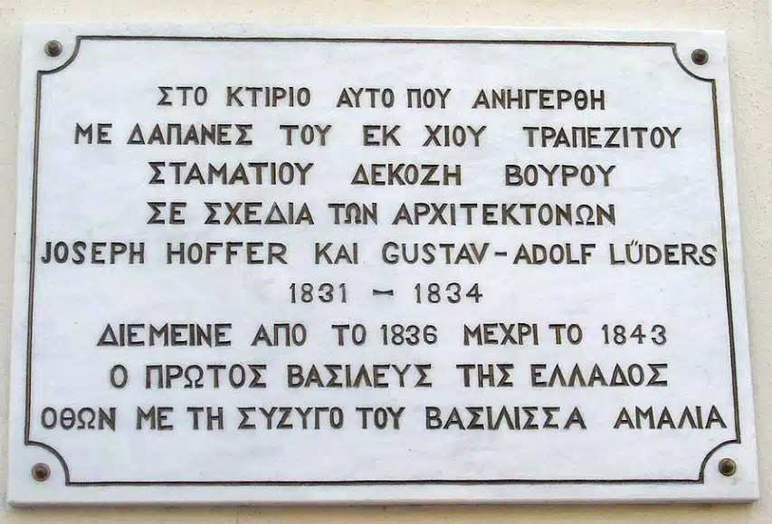 Από το 1837 έως το 1843, ο βασιλιάς Όθωνας και η νεαρή βασίλισσα Αμαλία εγκαταστάθηκαν στο μέγαρο Δεκόζη-Βούρου, σημερινό Μουσείο της Πόλεως των Αθηνών, περιμένοντας να ολοκληρωθούν τα ανάκτορα (σημερινή Βουλή).