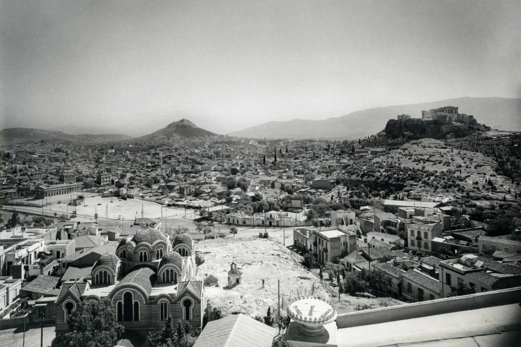 Αποψη απο το Εθνικό Αστεροσκοπείο Αθηνών (Πλατεία Θησείου με τον προσφυγικό οικισμό στο κέντρο)