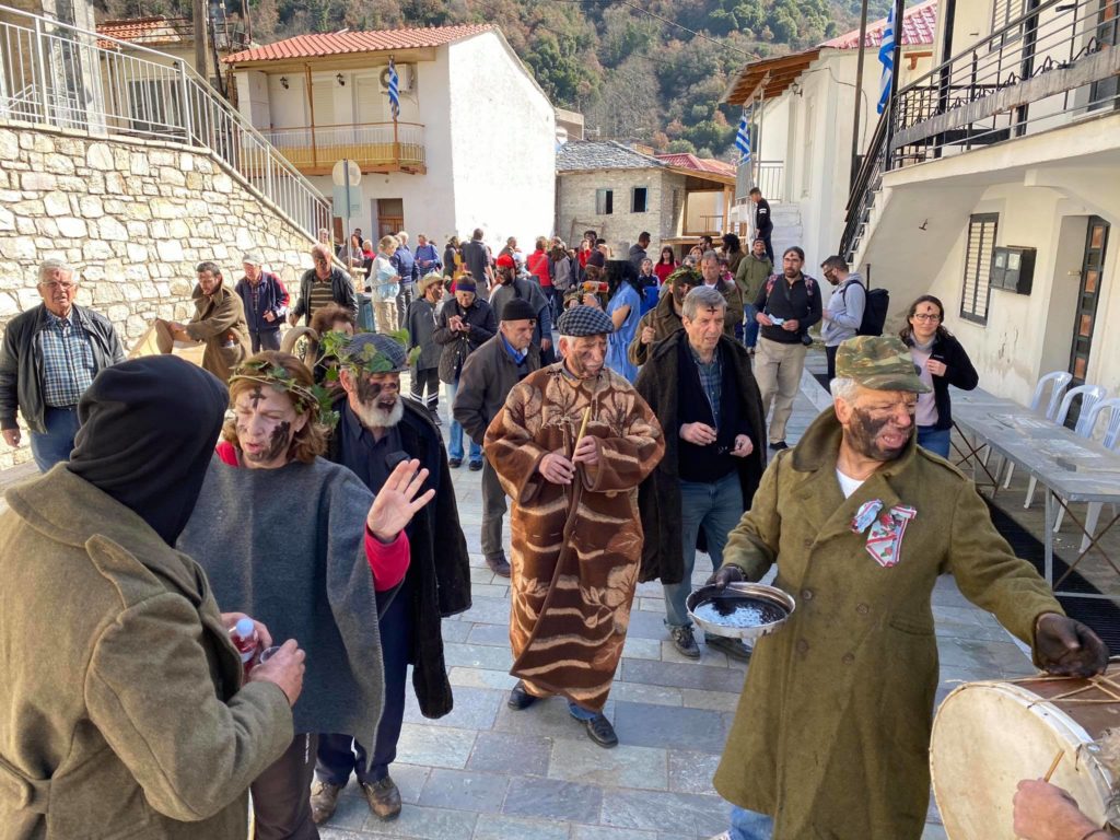 Ακολουθεί ο λεγόμενος «Χορός των τράγων». Αναβιώνοντας κυριολεκτικά τις τελετές της αρχαίας διονυσιακής λατρείας, οι κάτοικοι ντύνονται με προβιές και βάζουν κέρατα τράγων στο κεφάλι. Περπατώντας όλοι μαζί μέσα στους δρόμους του χωριού, θυμίζουν επακριβώς τις παραστάσεις των αρχαίων ελληνικών αγγείων, με μόνη διαφορά τις σιδερένιες κουδούνες, με τις οποίες προκαλούν τον ευχάριστο καρναβαλικό χαμό.