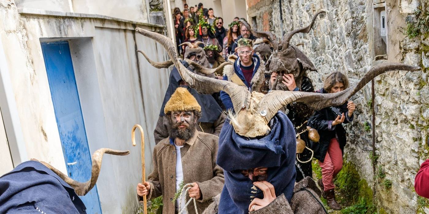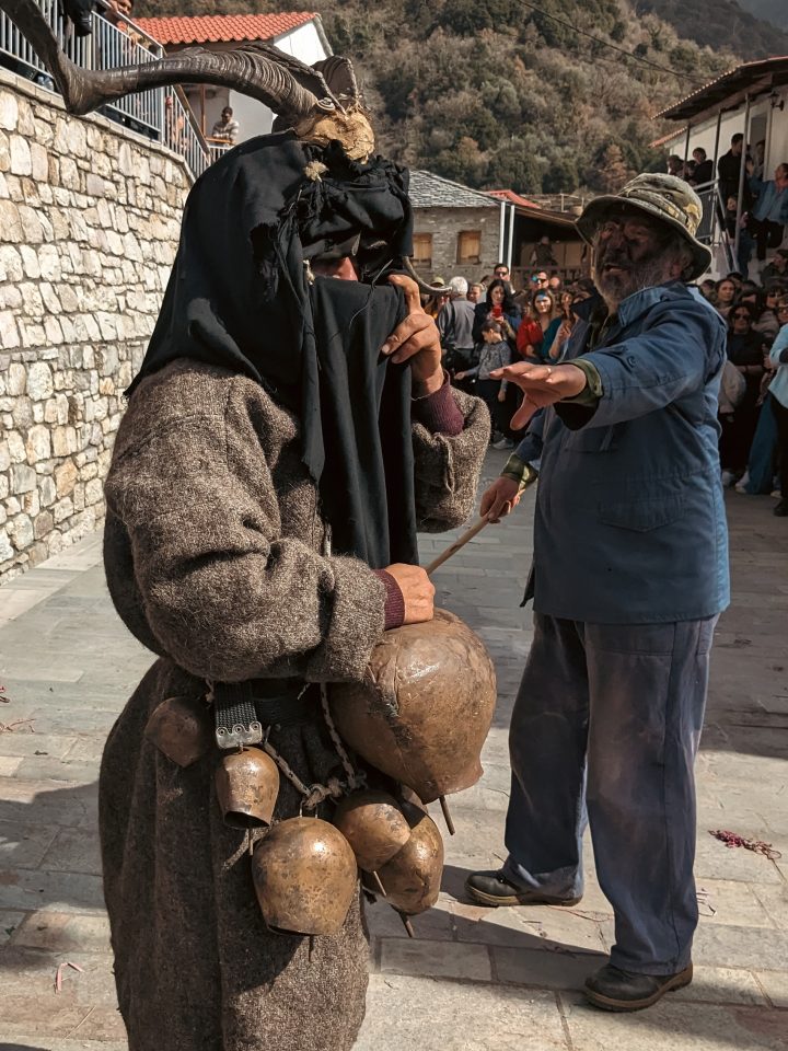 Ακολουθεί ο λεγόμενος «Χορός των τράγων». Αναβιώνοντας κυριολεκτικά τις τελετές της αρχαίας διονυσιακής λατρείας, οι κάτοικοι ντύνονται με προβιές και βάζουν κέρατα τράγων στο κεφάλι. Περπατώντας όλοι μαζί μέσα στους δρόμους του χωριού, θυμίζουν επακριβώς τις παραστάσεις των αρχαίων ελληνικών αγγείων, με μόνη διαφορά τις σιδερένιες κουδούνες, με τις οποίες προκαλούν τον ευχάριστο καρναβαλικό χαμό.